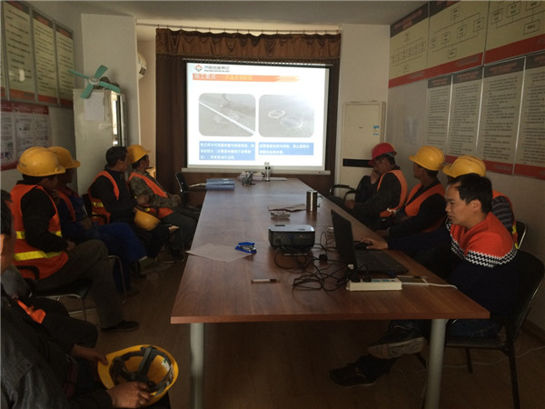 為此,濟(jì)南市市政工程有限公司緯十二路項目部進(jìn)行周密策劃,精心準(zhǔn)備,首先協(xié)助建設(shè)單位召開封閉施工新聞發(fā)布會,然后向沿線單位及小區(qū)居民發(fā)放公示信;針對路口檢查井蓋較多的情況,項目部提前通過PPT課件和視頻教學(xué)的方式組織民工進(jìn)行防沉降井蓋提升的施工及安全技術(shù)交底工作,確保瀝青面層攤鋪順利進(jìn)行。