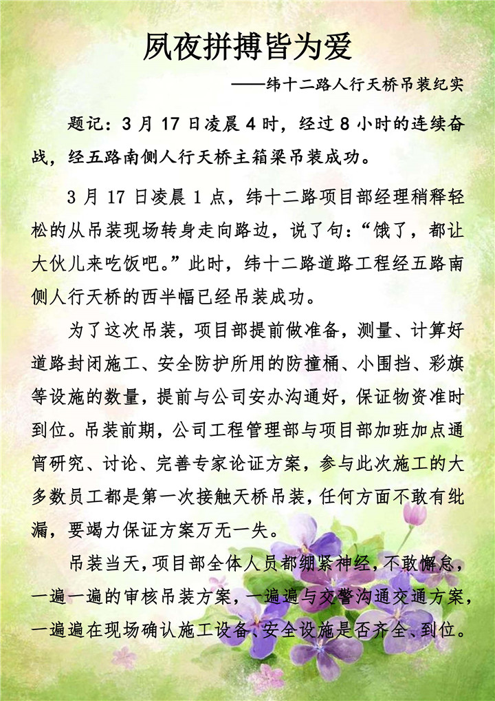 夙夜拼搏皆為愛------緯十二路人行天橋吊裝紀(jì)實