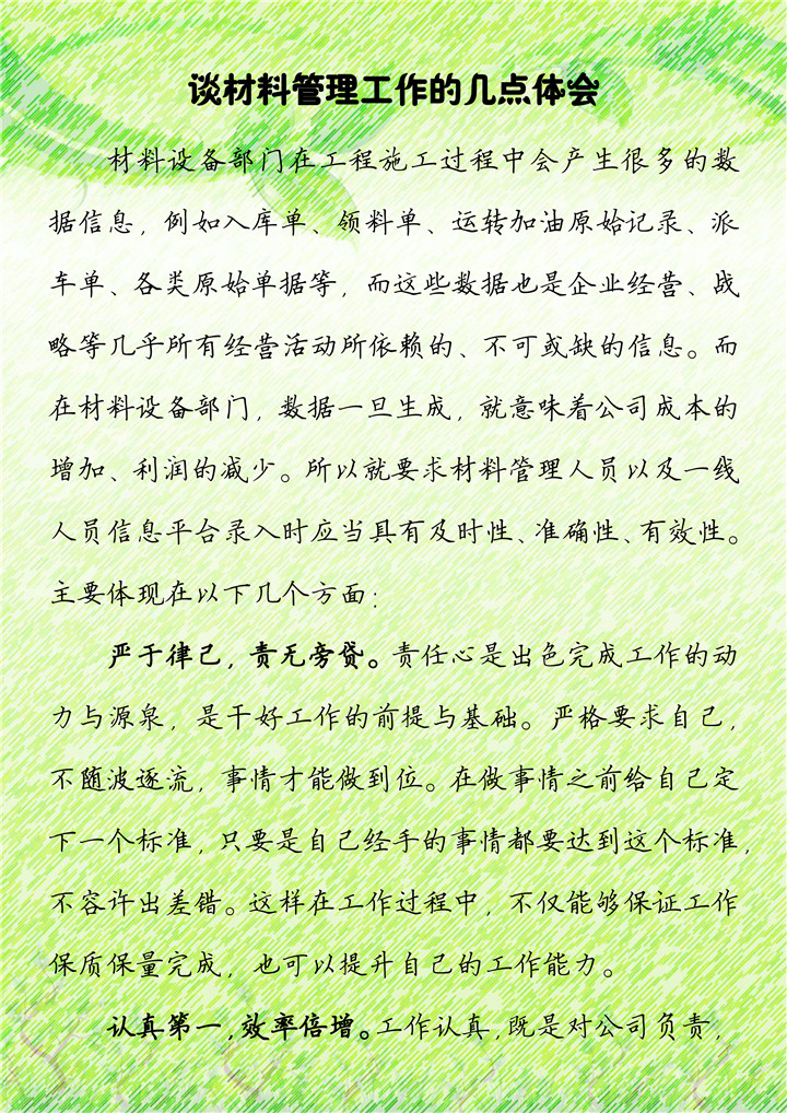 談材料管理工作的幾點(diǎn)體會(huì)