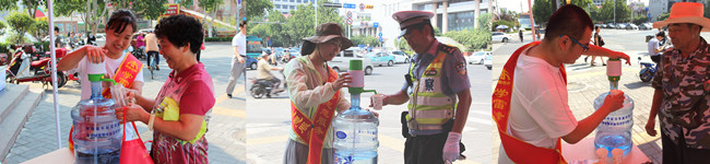 活動(dòng)當(dāng)天,最高氣溫高達(dá)40度,志愿者們頂著炎炎烈日,為過往市民提供飲用水、打氣筒、雨傘、扳子、鉗子、螺絲刀、藿香正氣水、速效救心丸、酒精藥棉等一系列救急便民措施,連續(xù)服務(wù)了近7個(gè)小時(shí),雖然汗流浹背,但依然面帶微笑,為市民提供喝水乘涼便民服務(wù),帶去陣陣清涼。當(dāng)市民了解到是濟(jì)南市政志愿者的時(shí)候,紛紛詢問起公司承建的重點(diǎn)工程項(xiàng)目,對公司的工程形象、進(jìn)度、質(zhì)量和安全文明施工稱贊不已,對公司志愿者積極投身到創(chuàng)城、社會(huì)公益事業(yè)等活動(dòng)中大加贊揚(yáng)。