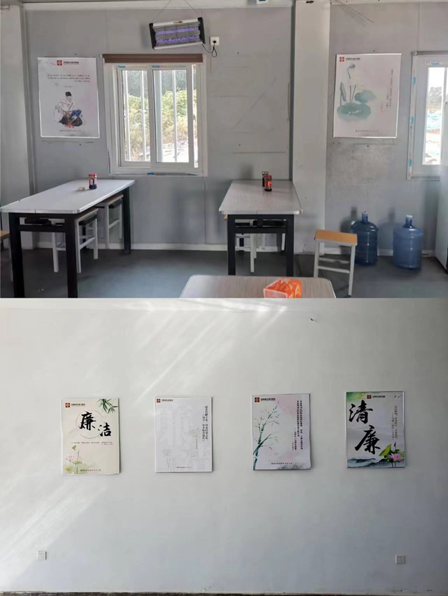 為持續(xù)推進(jìn)黨風(fēng)廉政建設(shè),筑牢拒腐防變思想方向,營(yíng)造廉潔文化工作氛圍,市政公司各項(xiàng)目部積極響應(yīng)集團(tuán)號(hào)召,在辦公區(qū)、食堂等地方懸掛了廉政文化宣傳圖牌,打造廉潔文化空間,形成了一道靚麗的風(fēng)景線,有力地推動(dòng)了公司廉政文化建設(shè)的深入開(kāi)展。