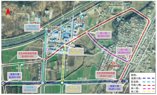 本項目建設單位為濟南高新技術產(chǎn)業(yè)開發(fā)區(qū)管理委員會財政性投資項目推進中心,工程位于濟南市高新區(qū),主要有港源六路、彩龍路、大生命科學院環(huán)路二期、縱一路、縱二路5條道路,道路總長3784米,施工內容為道路、排水、管線綜合、電力管溝、照明工程、交通設施工程、綠化工程和橋(涵)工程等,計劃工期540日歷天。