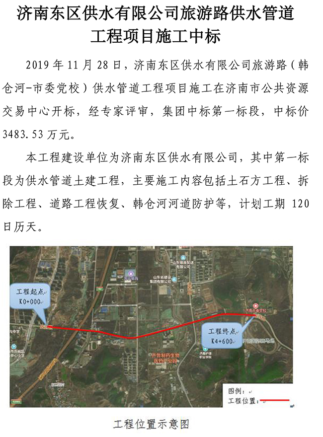 濟(jì)南東區(qū)供水有限公司旅游路供水管道工程項(xiàng)目施工中標(biāo)