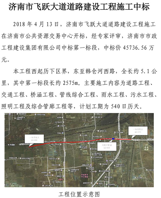 濟(jì)南市飛躍大道道路建設(shè)工程施工中標(biāo)