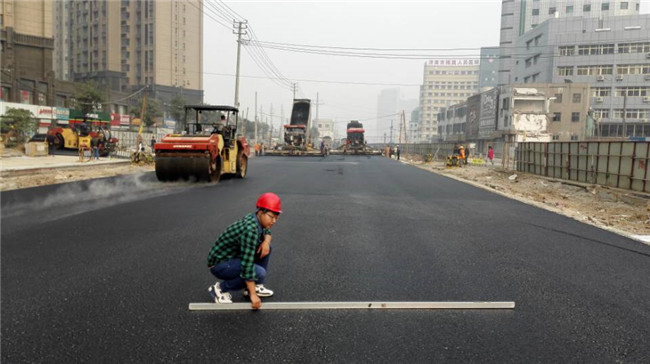 10月18日上午,緯十二路道路改造工程第二標(biāo)段進(jìn)行經(jīng)一至經(jīng)六段西側(cè)快車道瀝青攤鋪施工。此次主要施工瀝青底面層和中面層,攤鋪面積約12375㎡,計劃分兩天攤鋪完成。瀝青碾壓及時,項目部質(zhì)檢人員及時對平整度進(jìn)行檢測,保證瀝青攤鋪碾壓成型質(zhì)量。
