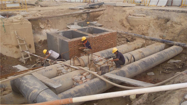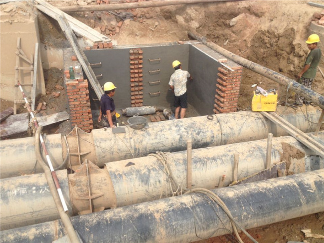 華山西路路口處熱力放水閥檢查井砌筑,固支鋼筋綁扎,模板支設(shè),下一步工序進行砼澆筑