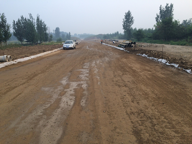 本工程于2016年5月開(kāi)工,本月主要進(jìn)行過(guò)路管安裝、基層水穩(wěn)攤鋪和雨水口砌筑施工。